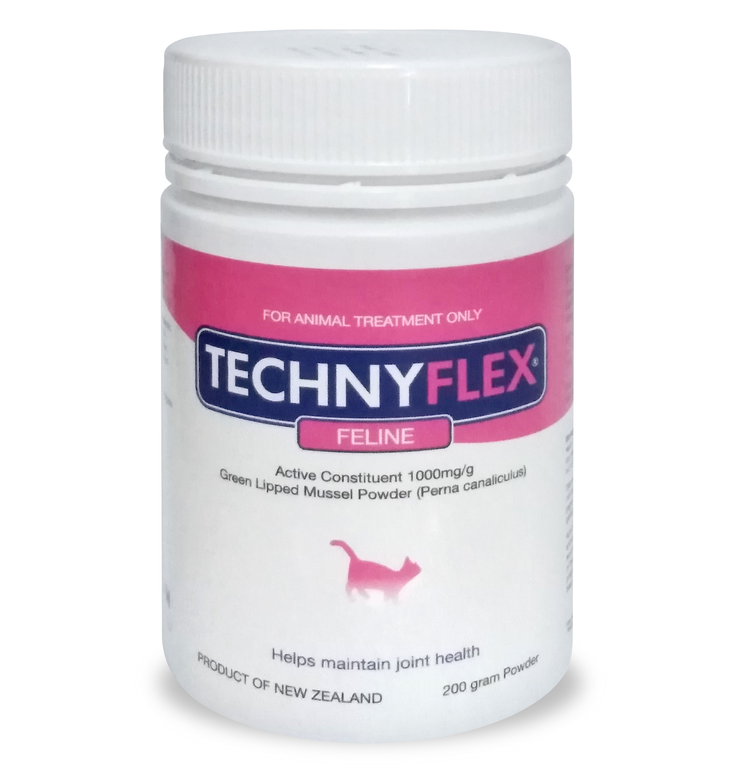 Technyflex® feline is made from 100% New Zealand green lipped mussel and is used to manage the onset of arthritic symptoms that may assist with pain and inflammation of the joints, rejuvenate cartilage and connective tissues.
